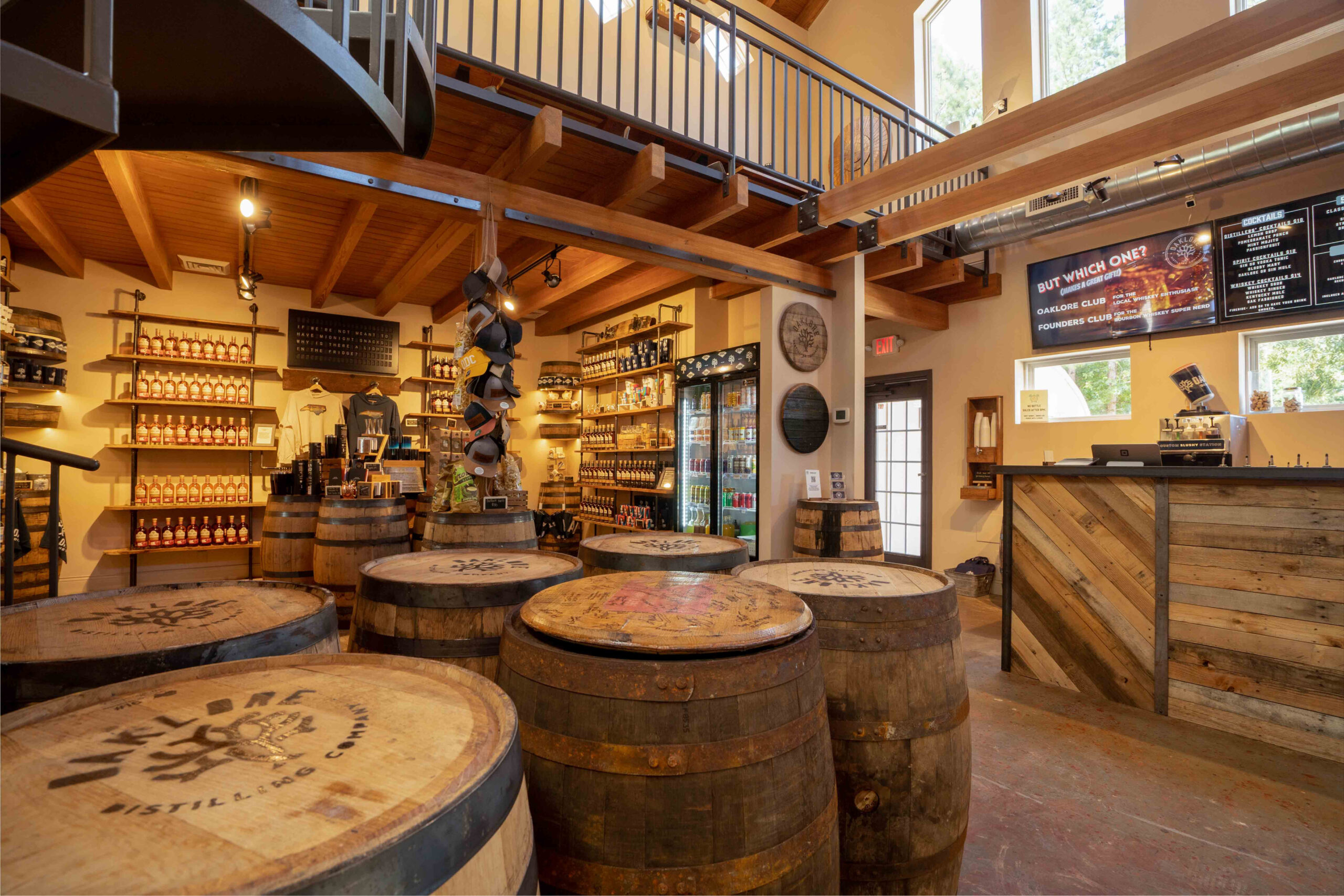 Welcome to Oaklore, a distillery, tasting room, patio, and event locale in Charlotte, NC. We believe the best drinks are those shared with friends, which is why we’re proud to introduce our crafted spirits to the whiskey world. Come, discover where ‘Your story meets the staves,’ and let the flavors unfold.