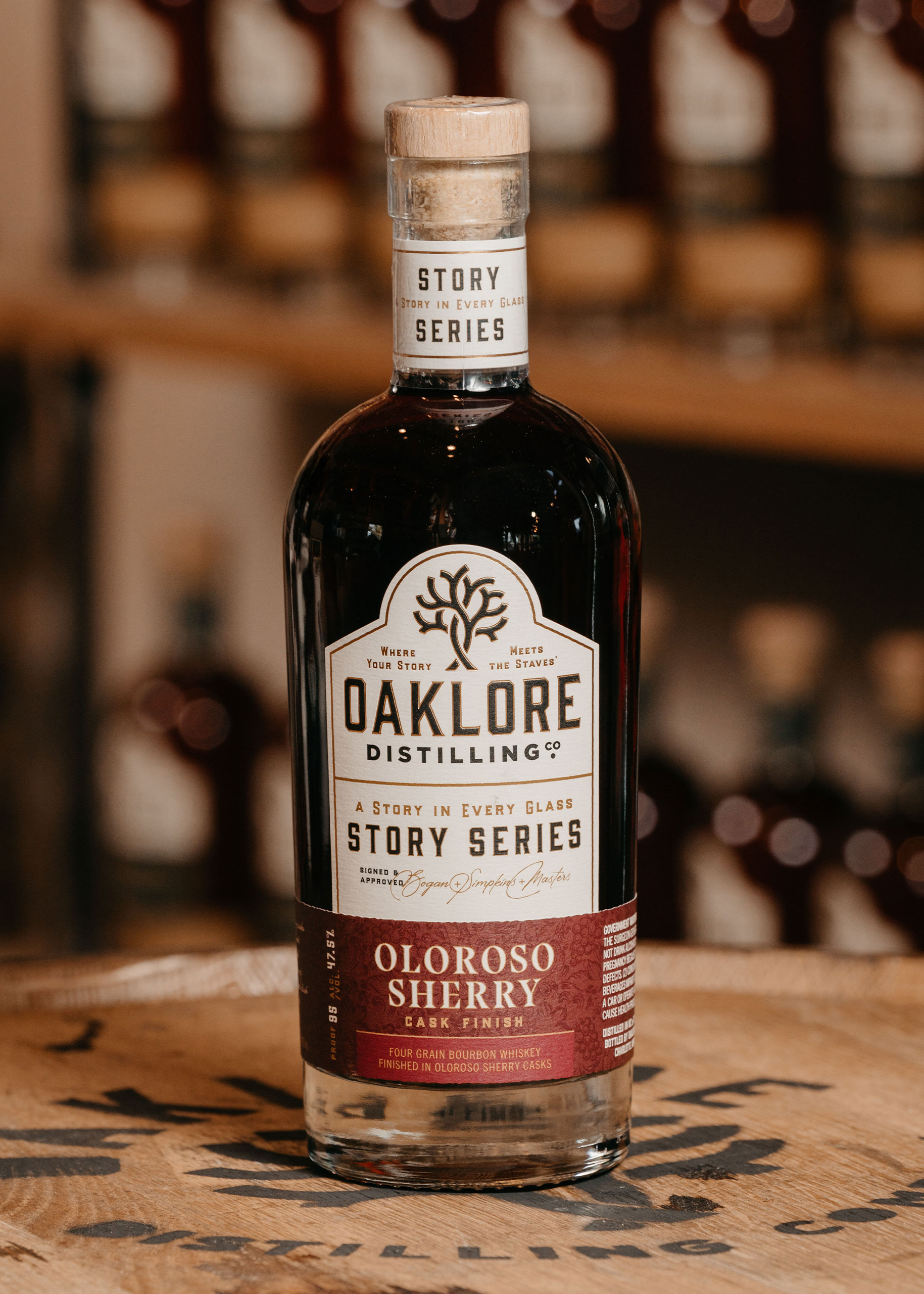 For this Story Series release, we start with Oaklore’s traditional four grain bourbon, which is crafted by our sister distilleries in North Carolina. Distilled on 24-inch Vendome all-copper column stills, the Four Grain Bourbon uses “the big four” American Whiskey grains (corn, wheat, barley & rye). The whiskey combines the best five- to six-year-old barrels of wheated bourbon and rye bourbon mash bills, which are aged separately, hand-selected, and then batched together – producing a final mash bill of 70% corn, 10% rye, 10% wheat, and 10% malted barley. Then, our master blender transferred the whiskey into Spanish Oloroso Sherry Barrels where it rested for 12 to 18 months – picking up the gorgeous Mediterranean flavors and influence inherent to Oloroso Sherry Casks.